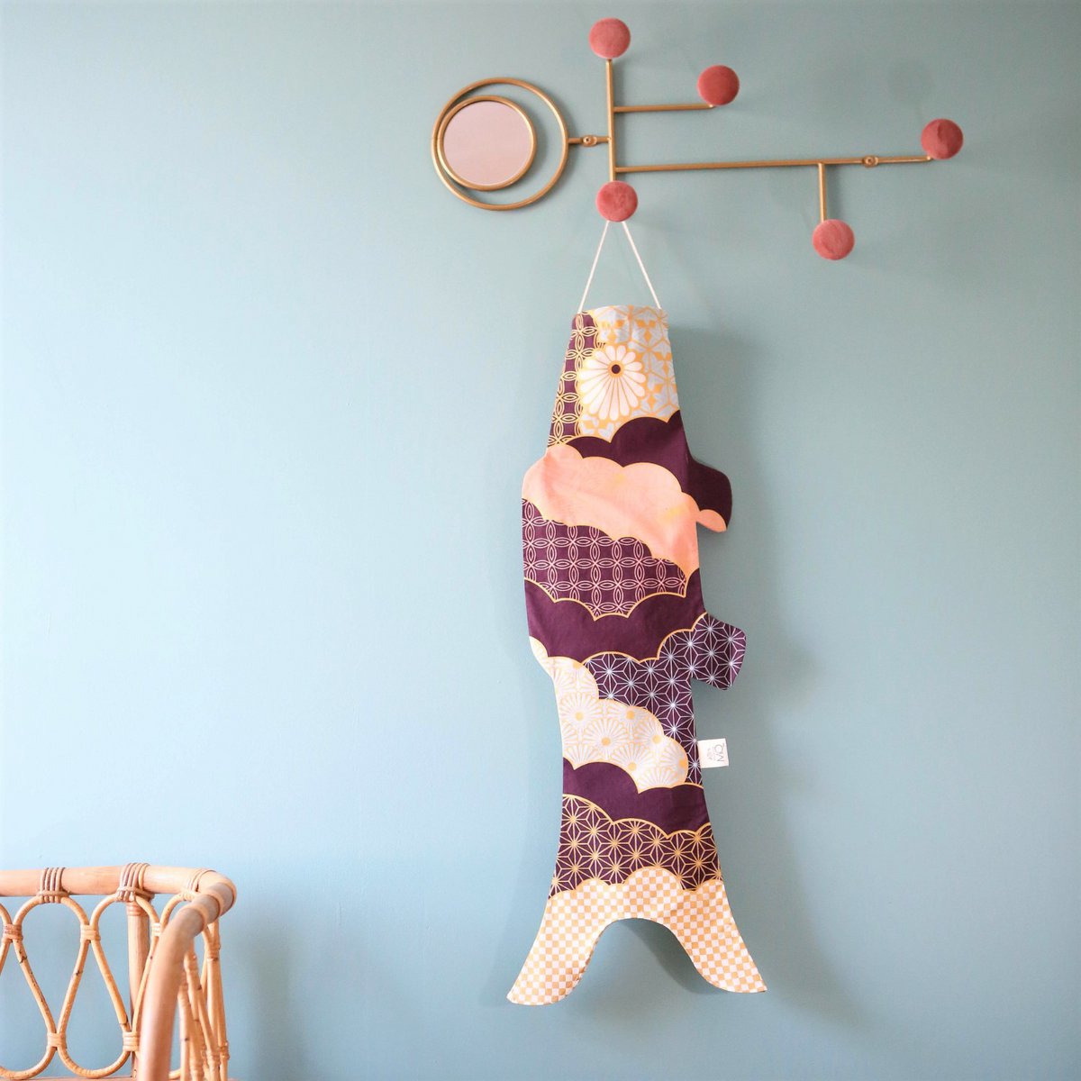 Sensueel en fluwelig, de Chiku Prune koinobori is de perfecte aanvulling op elk interieur. Het tijdloze pruimen-, nude- en hemelsblauwe kleurenschema past naadloos bij elke interieurstijl. Met het bamboe (Chiku) motief benadrukt het op elegante wijze veerkracht en kracht. Geef de Chiku Prune cadeau en je deelt symbolisch een stukje van je eigen kracht en veerkracht met de mensen van wie je houdt.